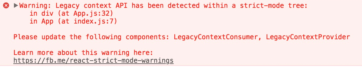 过时的 context API 容易出错,将在未来的主要版本中删除。在所有 16.x 版本中它仍然有效,但在严格模式下,将显示以下警告: